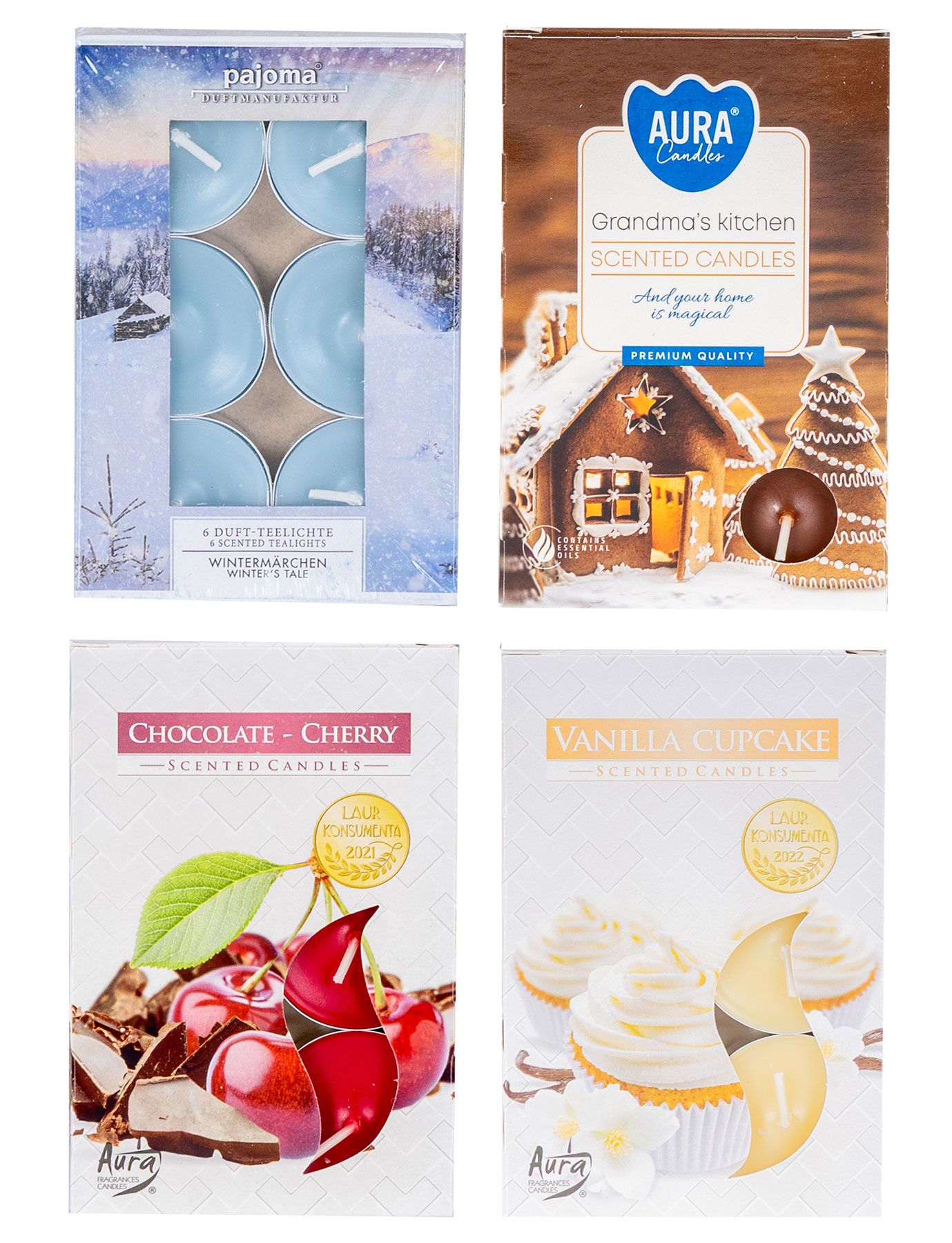 24 Kerzen 4x6 Stück Weihnachtsdüfte Weihnachtlich Duftkerzen Teelicht Tischdeko