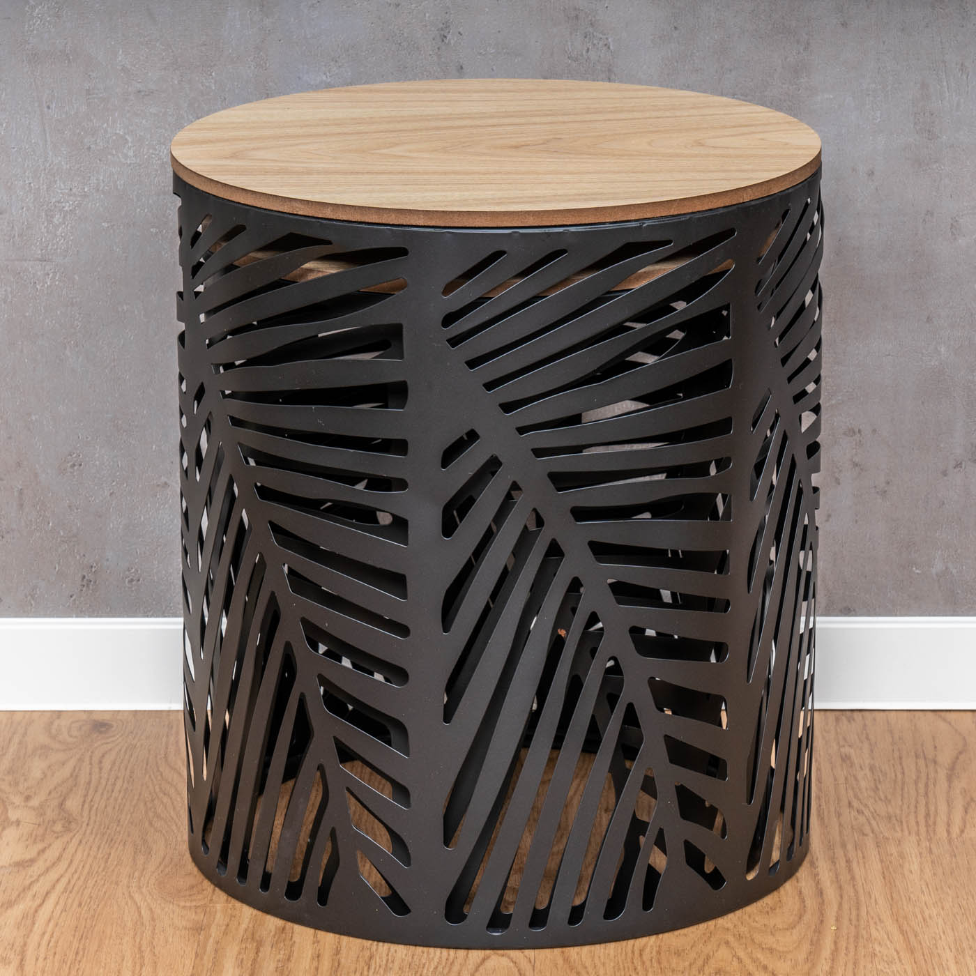 2er Set Beistelltische Schwarz Metall Holz Rund Couchtisch Industrial Sofatisch