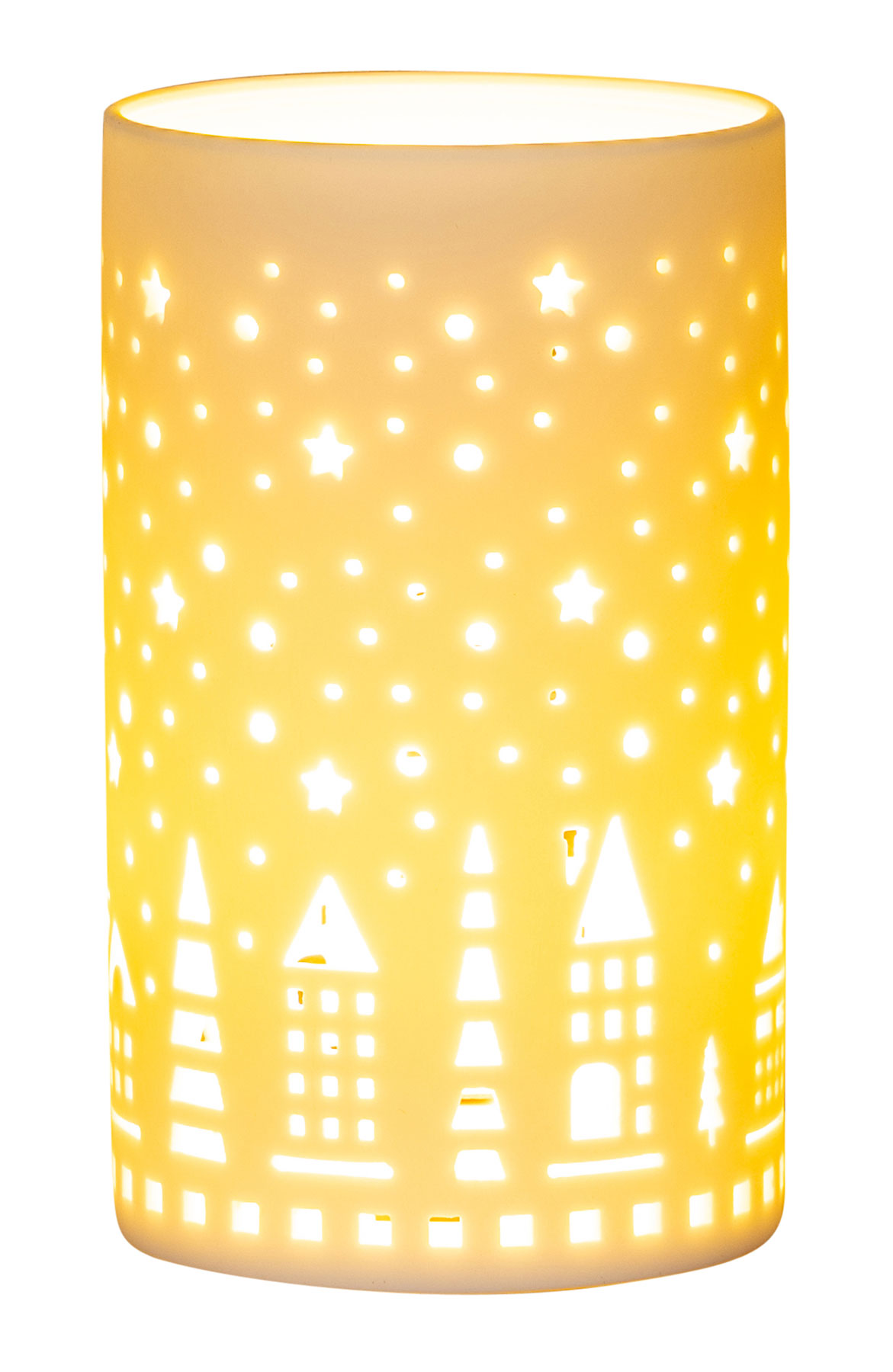 2er Set LED Dekoleuchte Weiß H13cm Porzellan Weihnachten Deko Windlicht Tischdeko