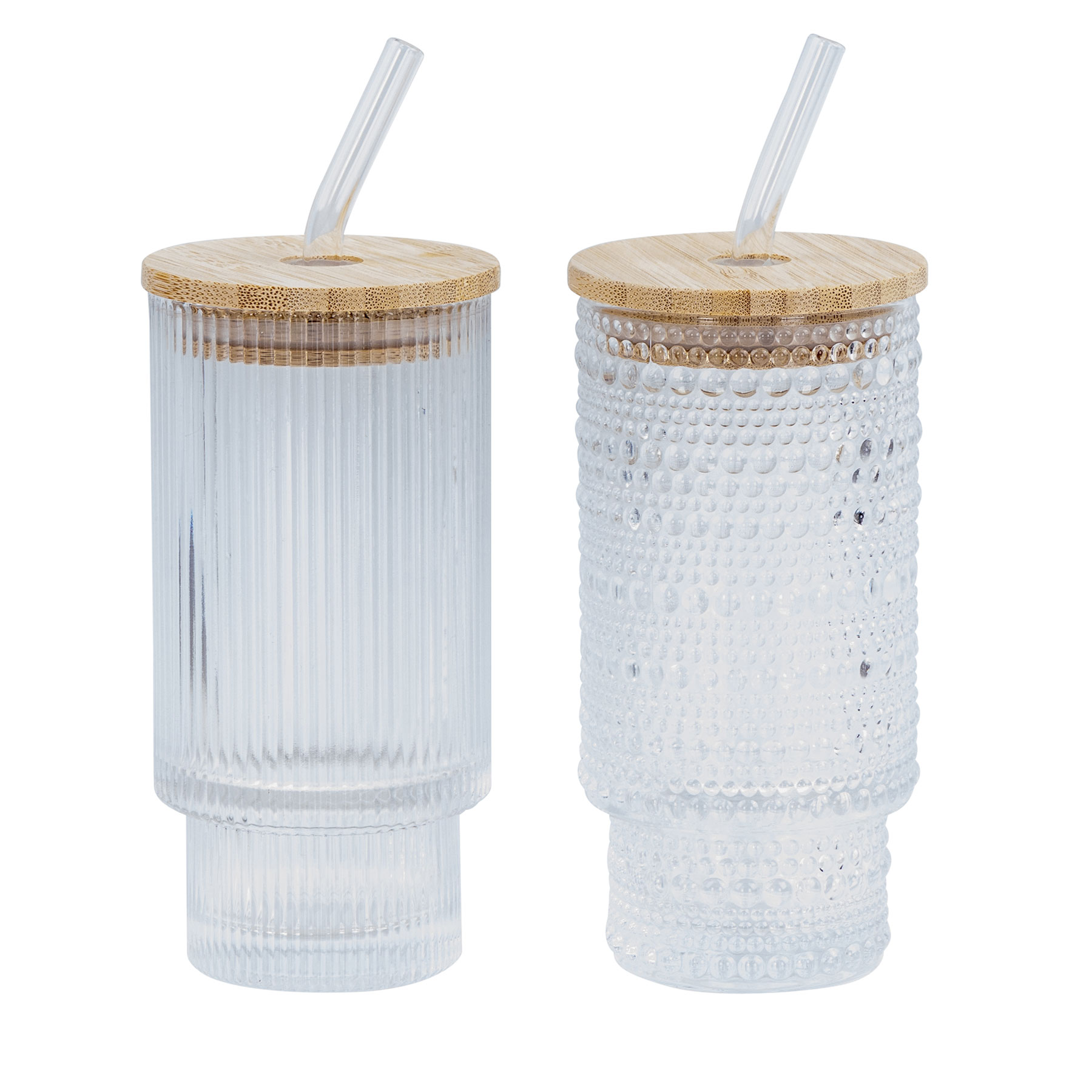 - Lieferumfang: Sie erhalten das abgebildete 2er Set Trinkgläser mit modernem Reliefmuster (inkl. Glas-Strohhalme & Bambusdeckel - ohne Deko)