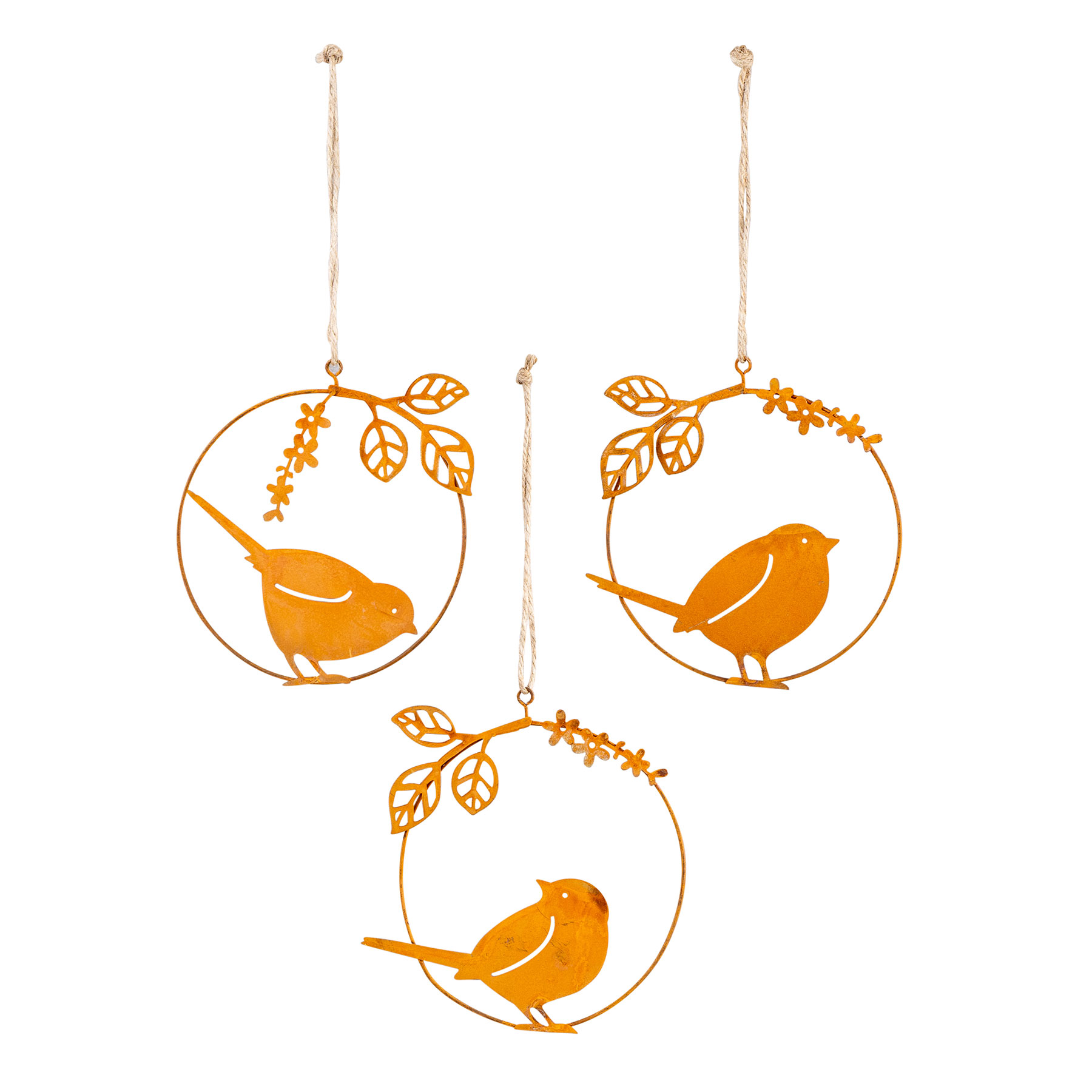 Jedes Hängeelement zeigt ein fröhliches Tiermotiv kunstvoll auf einem Ast platziert. Die Dekoanhänger aus Metall sind in edler Rostoptik gestaltet und erhalten damit einen charmant-rustikalen Look.