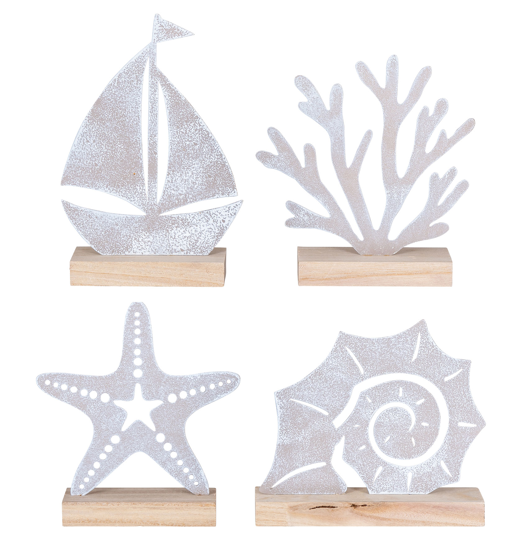 - Sie erhalten ein 4teiliges Set maritimer Deko-Aufsteller: Boot, Muschel, Seestern, Koralle
