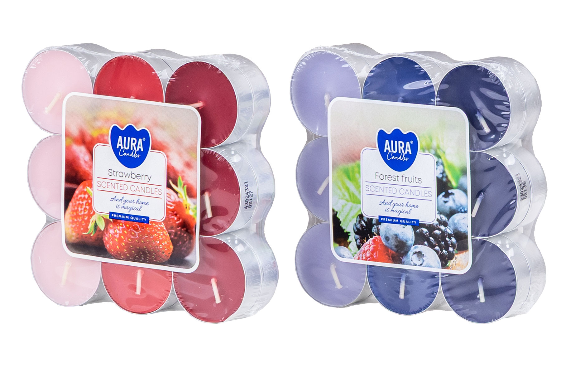 - 72 Stück bunte Teelichter mit Duft in einem Paket.