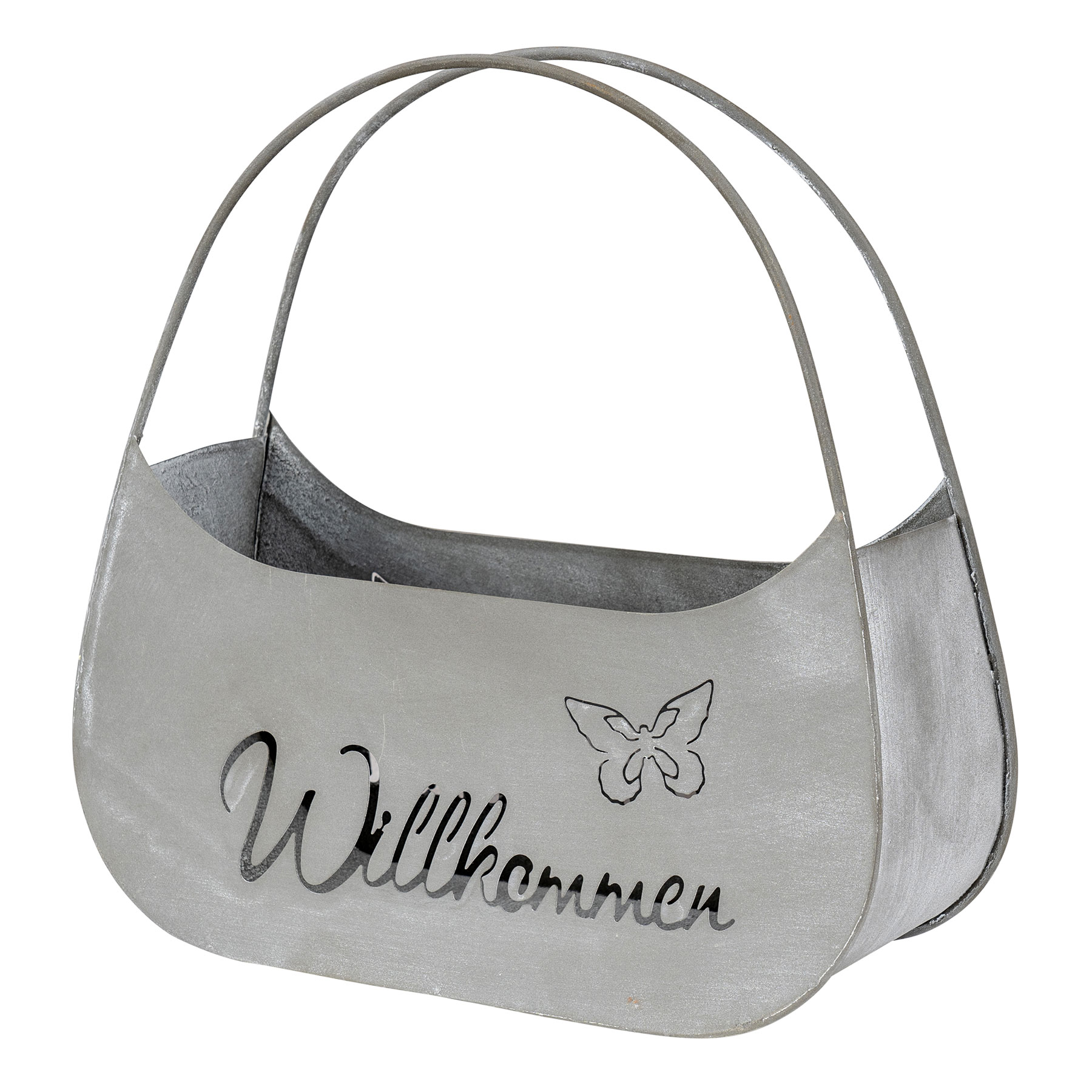 Blumentopf Tasche Willkommen L25cm Grau Metall Pflanztopf Garten-Deko Blumen