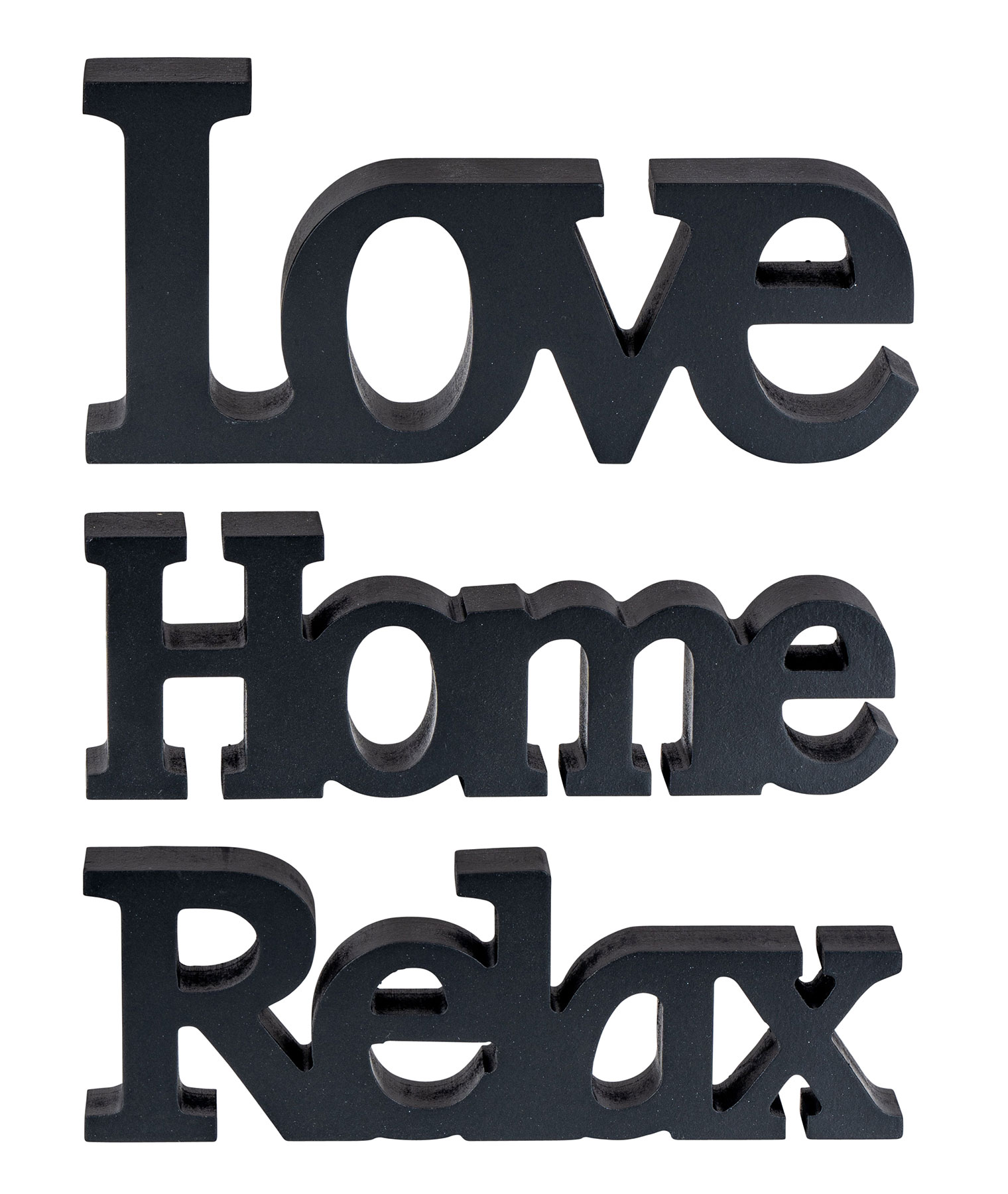 Love Home Relax Schriftzug Schwarz MDF Holz Deko Aufsteller Tischdeko Wohnkultur