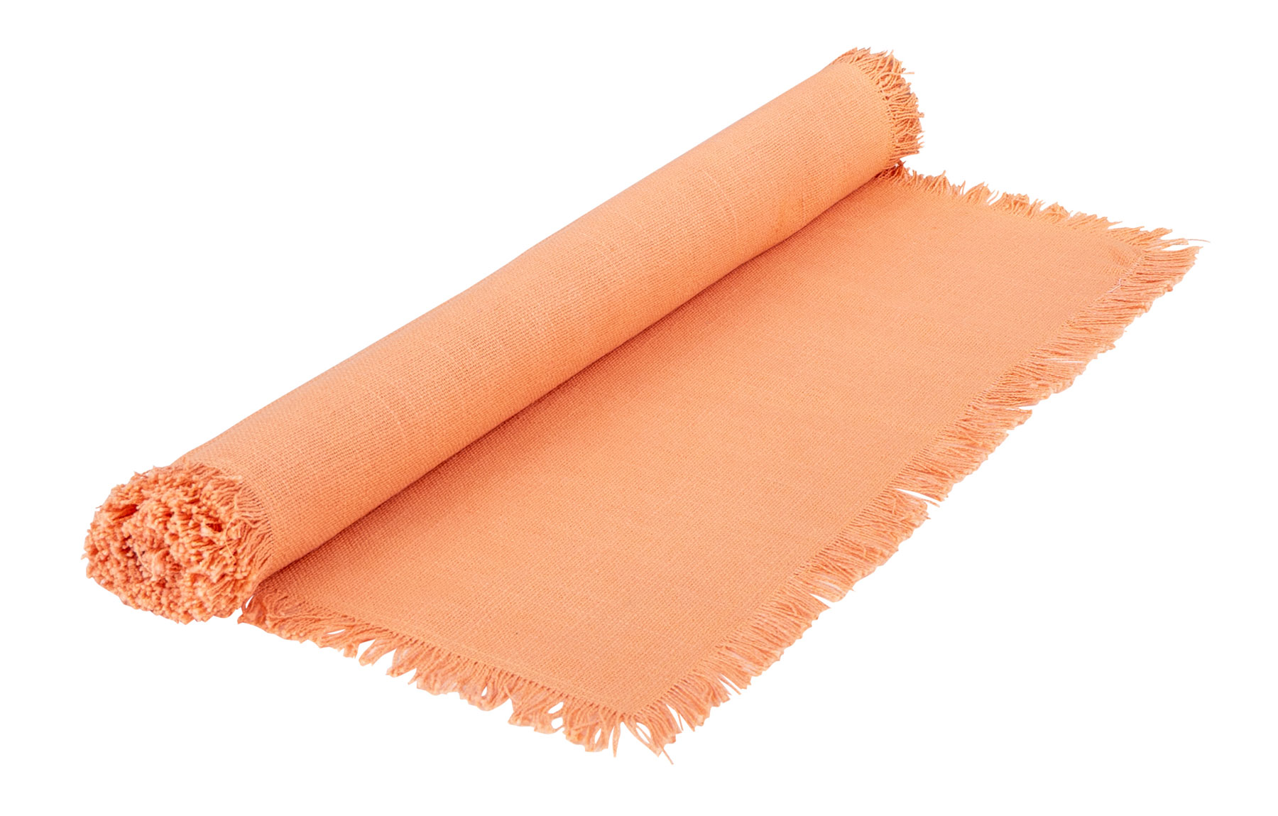 Der Baumwoll-Tischläufer in pastelligem Orange verleiht jedem Tisch eine natürliche, frische Ausstrahlung.