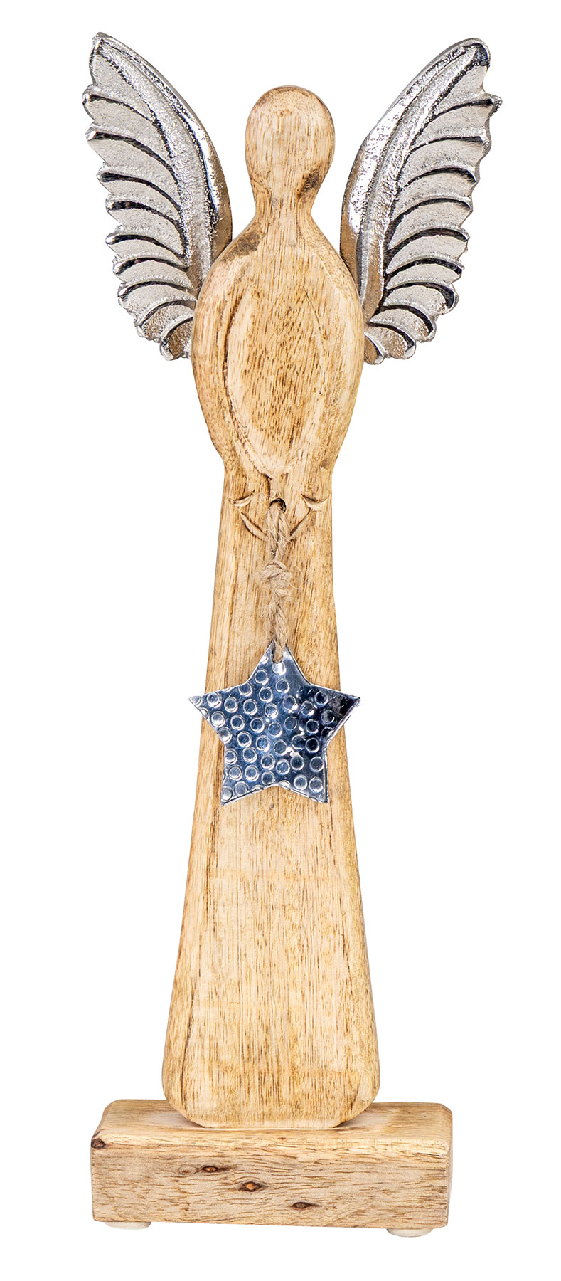 Produktinformationen "Weihnachtsengel Mangoholz H34cm Engel Deko Aufsteller Holz Metall Weihnachten"