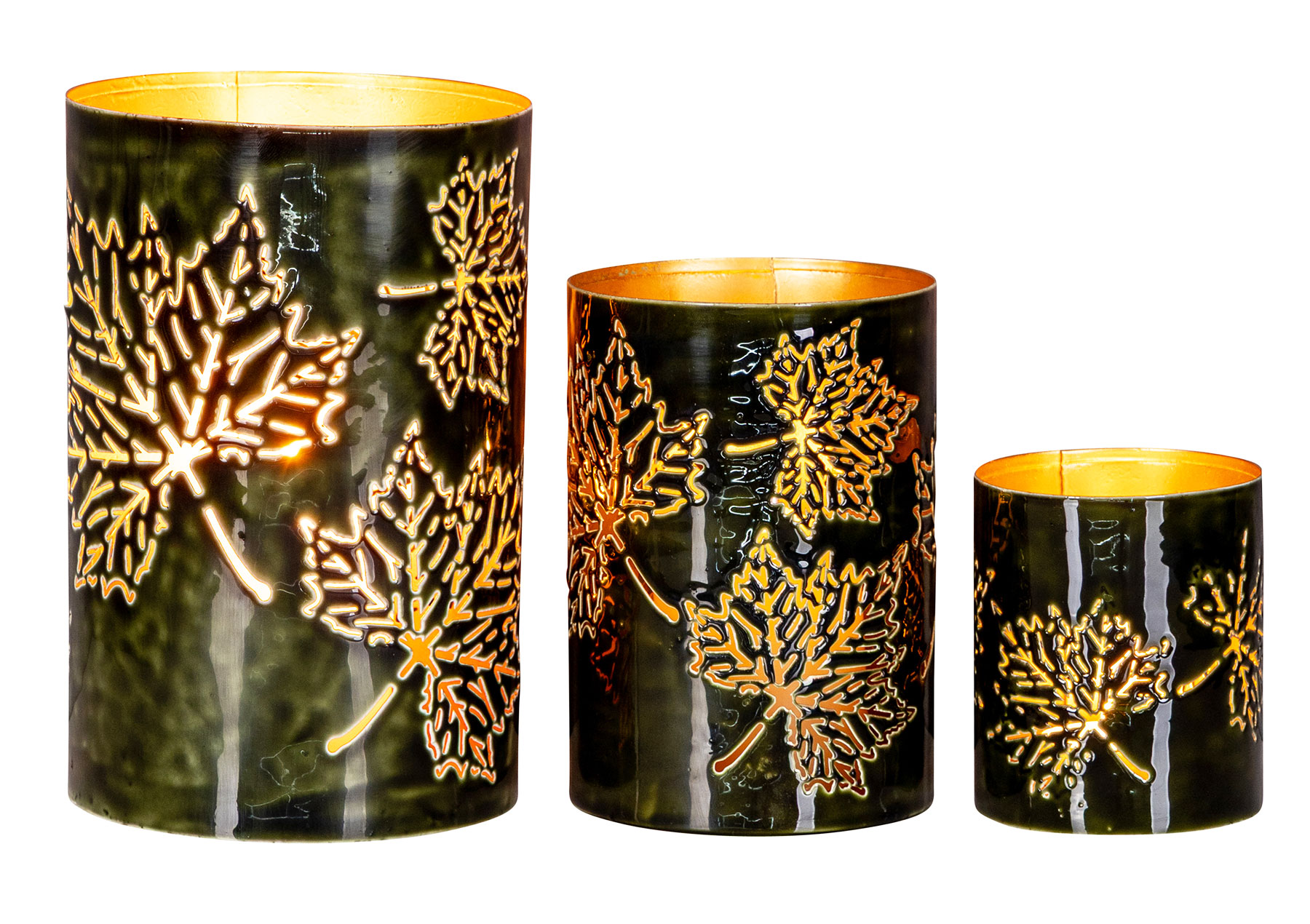 - Maße der Windlichter B x H x T: ca. 8 x 10 x 8 cm, 10,5 x 15 x 10,5 cm und 13 x 20 x 13 cm