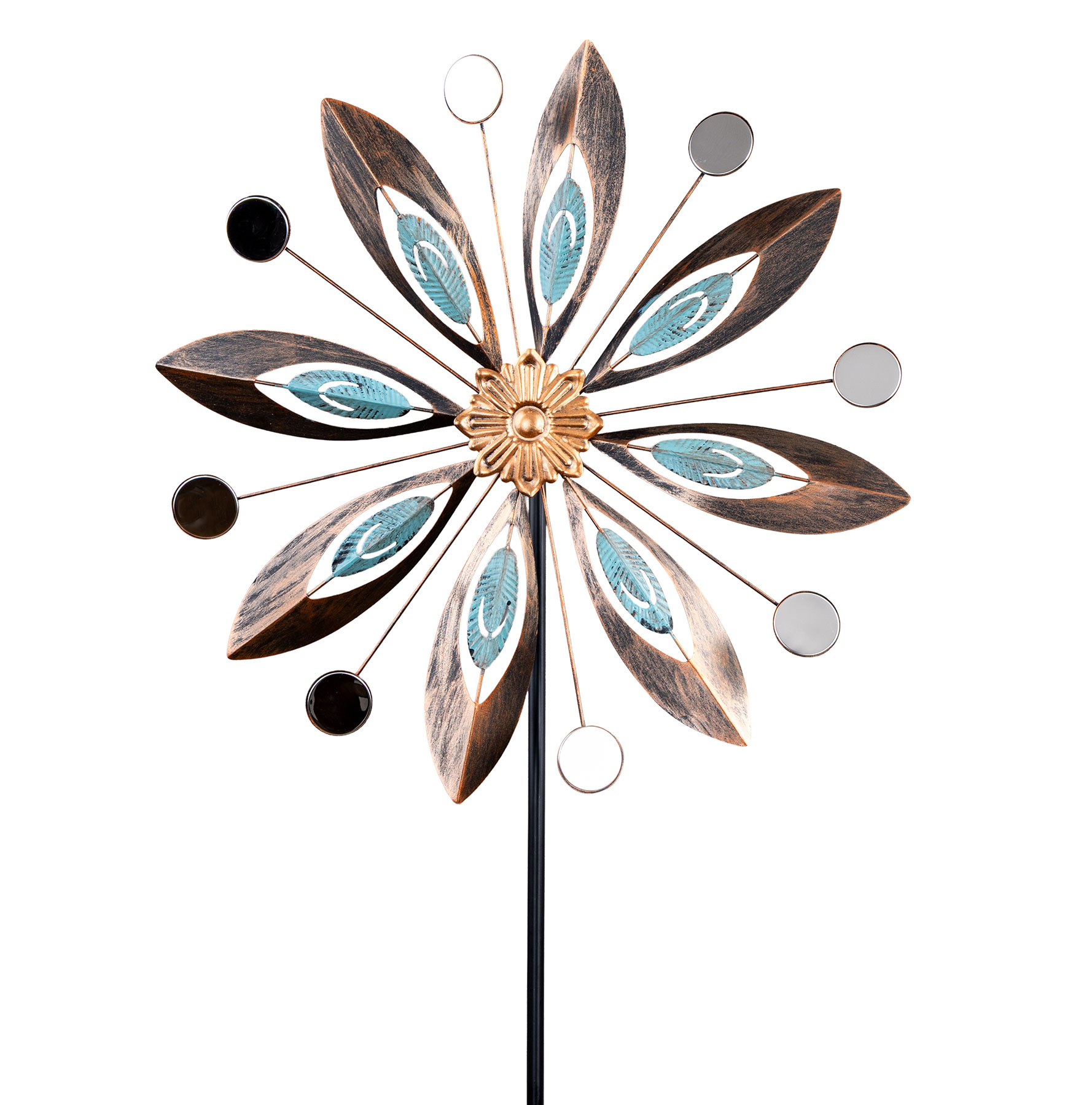 Windrad Gartenstecker Metall H180cm Blume Antik Spiegel Gartendeko Windmühle